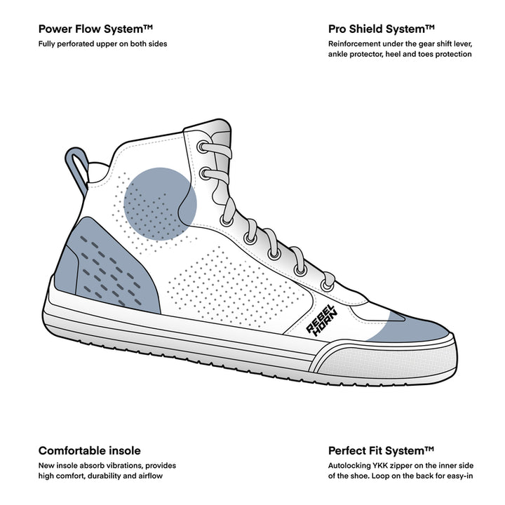 Rebelhorn Arpione È scarpe motociclistiche eleganti e funzionali, creato per Guida in città e uso quotidiano. Queste scarpe si combinano Sicurezza, comfort e stile e sono perfetti per i conducenti che vogliono un Aspetto casuale senza compromettere il rifugio.