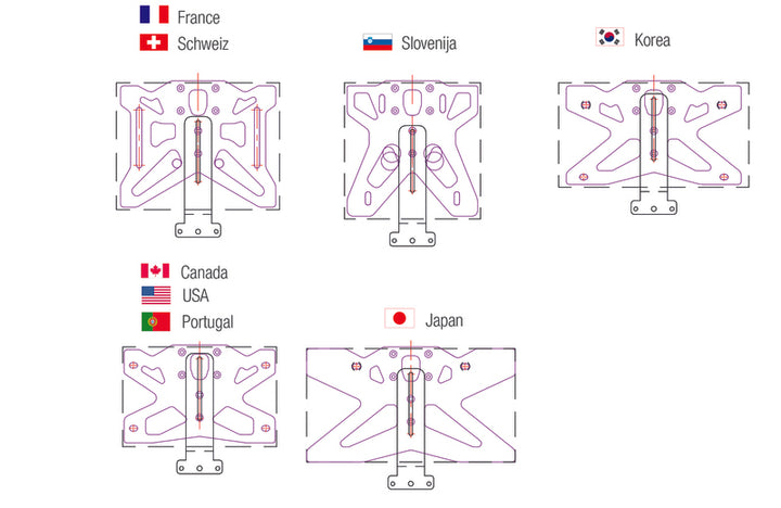 Riflettore per il titolare della targa di licenza con staffa di fissaggio6 Gay Orizzontal Brackt: Italia, Spagna, Staffa tedesca: Francia, Svizzera, Portogallo, Slovenia Colore: Red