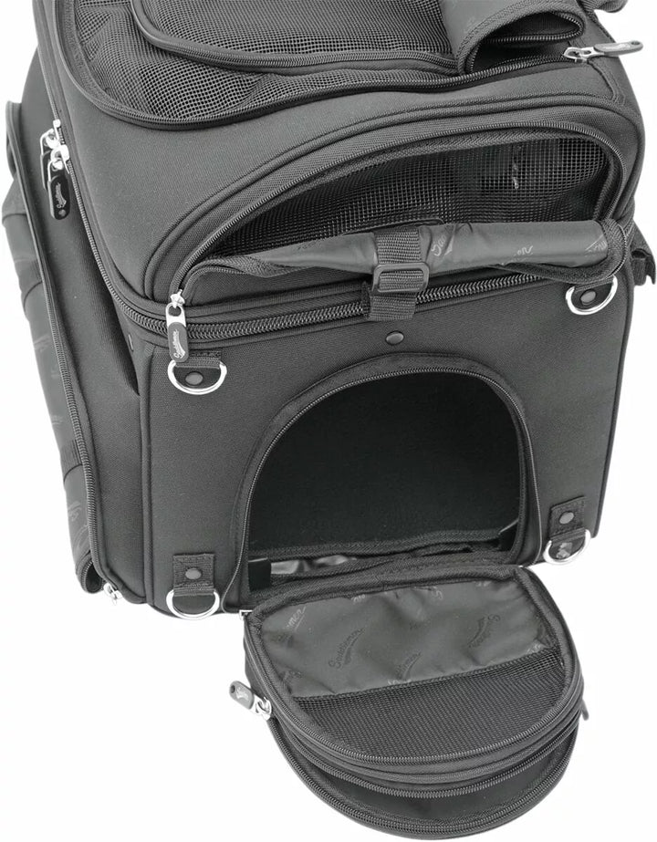 Il modo migliore per portare il tuo piccolo animale domestico sulla tua moto in comodità, inoltre questo vettore raddoppia come un carico efficace, più prese d'aria e le alette di accesso ti consentono di sfogare aria sul tuo animale domestico fornendo al contempo il pad botom facile e spaw per il comfort del tuo animale domestico; Include i vassoi di cibo e acqua che riparano ordinatamente nel proprio compartimento, due sistemi di montaggio inclusi; Un cablaggio del sedile versa-saggio Versa o un sistema di cinghia della barra femminuccia regolabile attacca facilmente la borsa al sedile della motocicletta, portapacchi o sissy bar, cinghie di montaggio a disconnessione rapida e manica da bar di femia STURDY GRIP HANDE per un comodo trasporto - incluso zaino pacco pacchetto pacco pacchetto libertà di movimento mantenendoli fissati nella borsa; Viene fornito con un breve guinzaglio interno e un lungo guinzaglio a piedi per i box per animali domestici, il compartimento per animali domestici misura 16 "W x 14" l x 14 "t (3.200 cu. In. Capacità), si prega di notare le dimensioni di questa borsa per una misura adeguata per il tuo animale domestico.