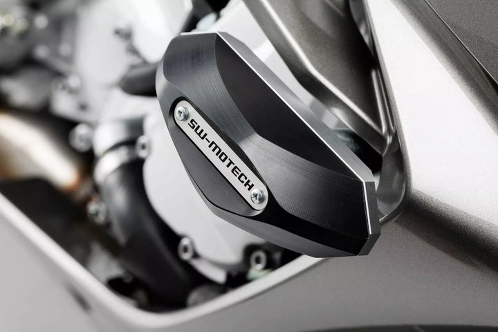 Frame Crash Pads Provide Additional Protection in the Event of A Fall, The Shape, Surface and Materials of the Pads Provide Excellent Sliding Properties to Reduce Damage to the Motorcycle, The Robust Aluminum Mounting Bracket Is Easy to Install, and the Abrasion Prazion Prazion Protection of the Frame, Engine and Fairing, Well-Shaped, Exchangeable (IF Needed) Slider Pad Made of Abrasion-Resistant Polyamide, Large Contact Surface for Best Possible Force Distribution, Superficie ottimizzata di buone proprietà di scorrimento, lega di alluminio, facile montaggio e robusto allegato di tela