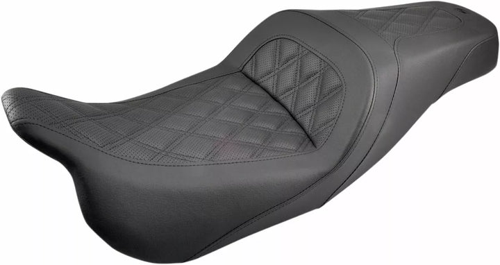 Il design raffinato a stivale diviso separa la superficie dei sedute dal supporto lombare per ridurre il coccige e la contropressione per il massimo comfort a lungo raggio, il supporto lombare alto e la sella con la sella e le gambe superiori per un comfort superiore; Il naso aerodinamico migliora la portata a terra, il gelcore ル nelle aree del guidatore e dei passeggeri riduce la pressione del coccige e aumenta la circolazione e il comfort, il punto reticolare (LS) infonde lo stile retrò a punto reticolo della vecchia scuola con una rottura moderna, incluso, progettata e resa in USA, disponibile in USA, disponibile in nero in nero