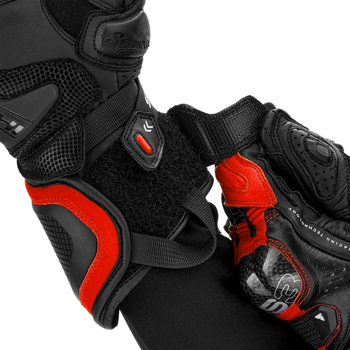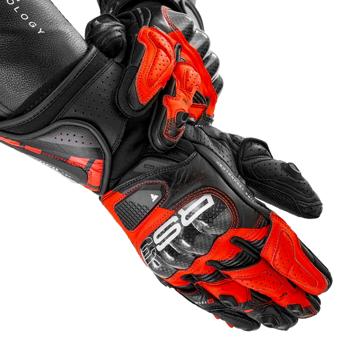 Fatto in pelle di capra E rinforzato con cangurulier nel palmo, combina la durata di RS-3 con l'agilità. Ottieni Cucciolo di linfa nel palmo, Protezione da nocche dura con rinforzo in fibra di carbonio, Mini-slider al mignolo, anche Protezione TPU sulle dita. Schiuma bumping armorplus E le aree rinforzate proteggono dove è più necessario, anche in duro contatto con l'asfalto.