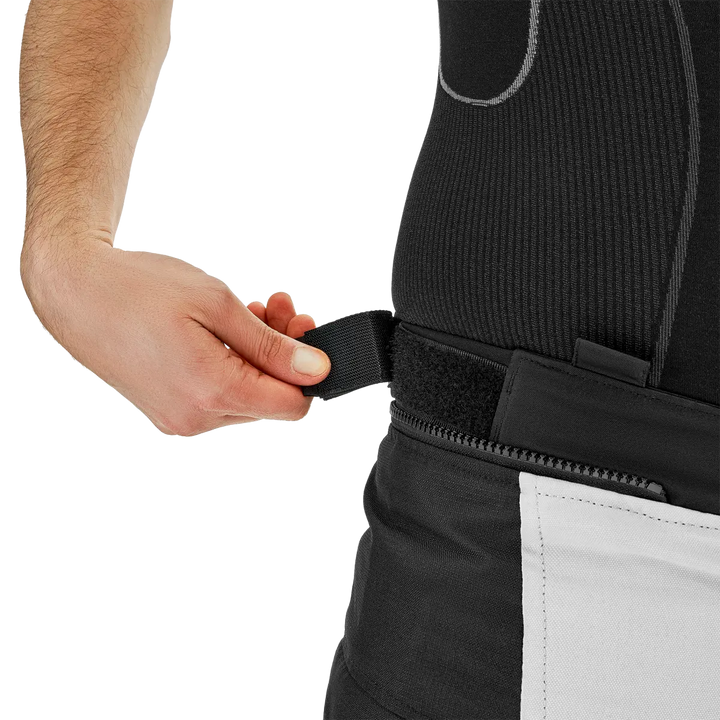 Che tu preferisca la lunghezza classica o la variante più corta, puoi regolare i pantaloni nel ginocchio, la chiusura delle gambe e l'anca con cinturini in velcro per uno Fit vicino e comodo. La vita elastica li fa anche sedere perfettamente anche dopo molte ore in sella. E con cerniera a 360 ° e cerniera a corto di connessione li collega rapidamente con il tuo Giacca dune E ottieni un vestito da tour completo.