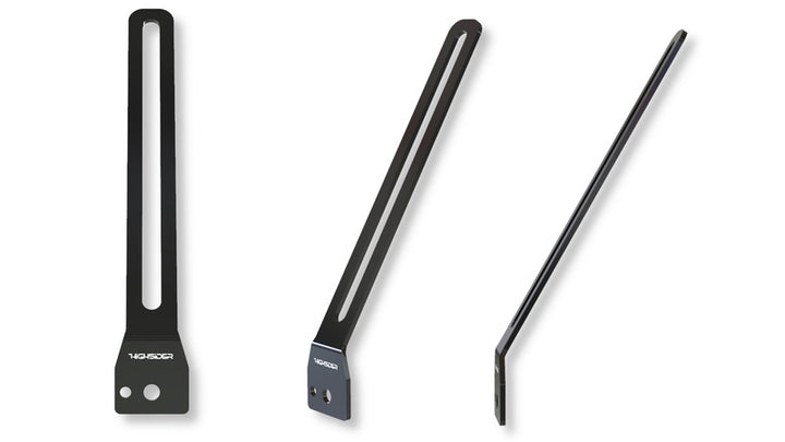 Porta in acciaio nero con logo Highsider per il montaggio diretto di vari riflettori al supporto della targa Akron-RS.
