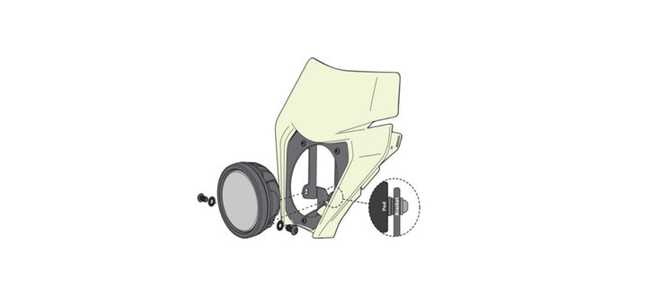 Questo attaccamento è appositamente progettato per consentire l'installazione e il cablaggio dei potenti fari a LED di Denali sui modelli di rally Husqvarna. Una soluzione stabile e accurata per coloro che vogliono aggiornare l'illuminazione con stile e sicurezza.
