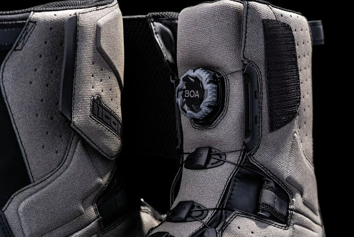 La tomaia è composta da pelle techtuff, la piastra di stinco rinforzata fornisce copertura per il sistema di allacciatura BOA per adattamento ottimizzato, eventi impermeabili/fodera traspirante mantiene l'interno asciutto mentre gli inserti alla caviglia D3O forniscono un aumento del costrutto coperto di tonalità è un cuscino in schiuma combinato