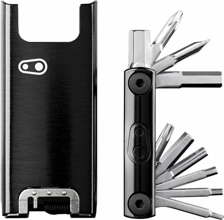 The F15 Multitool is a minimalist Yet Fully Capable Device Ready for a Variety of Riding Disciplines, Its Sleek Magnetic Case Not Only Stores Its Contents Compactly, But Also Servations as a Handle for Its 15 Tools, InCluding a Chain Breaker Bottle Opener for Those Post Ride Refreshments, Features:, Chain Tool Compatible With 8, 9, 10, 11, 12 -Speed, Hex Wrenches - #2, 2.5, 3, 4, 5, 6, 8, Cacciaviti - Phillips #2, Flat #1, chiave a raggio - 164 g