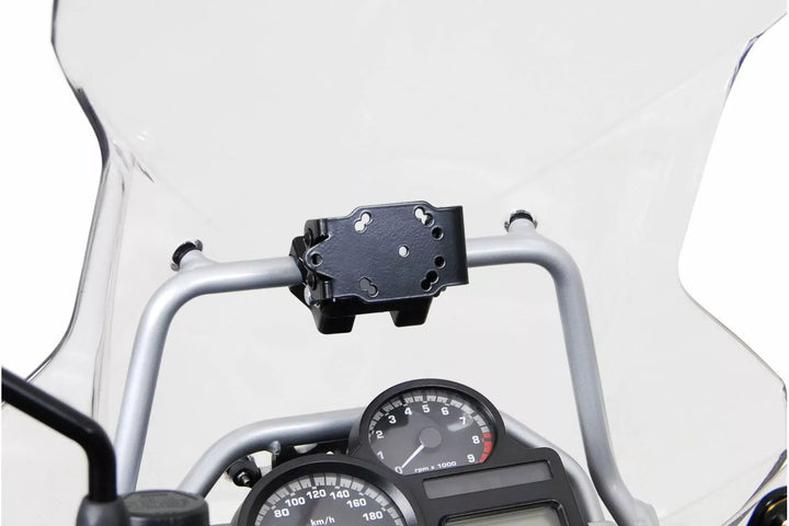 Le traverse, i supporti per parabrezza o altre barre nella cabina di pilotaggio possono fornire il punto di connessione ideale per il montaggio del dispositivo GPS, a seconda del modello di bici, rimovibile, dispositivo GPS assorbente d'urto fornisce una sospensione sicura per i soliti modelli GPS e custodie per dispositivi Navi Case pro o