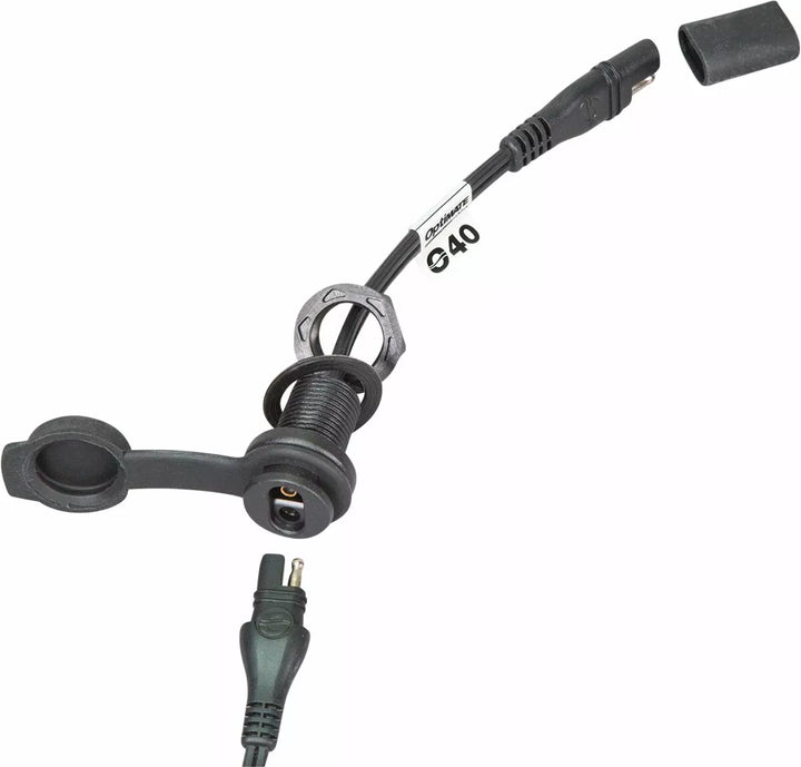 Creare un punto di alimentazione SAE a corto di pannello, per il corpo del connettore si adatta a un foro perforato da 18 mm (23/32 "), montaggio anteriore, dispositivo di fissaggio posteriore, per un pannello da 1 mm / 0,040", connettore SAE a 2 pin standard di industria, cavo max. Valutazione: 5 amp, 40 ° C/-40 ° F Usi di temperatura molto bassa; Rimane flessibile a temperature "sotto lo zero", include una guarnizione in gomma in linea per Optimate SAE Connect