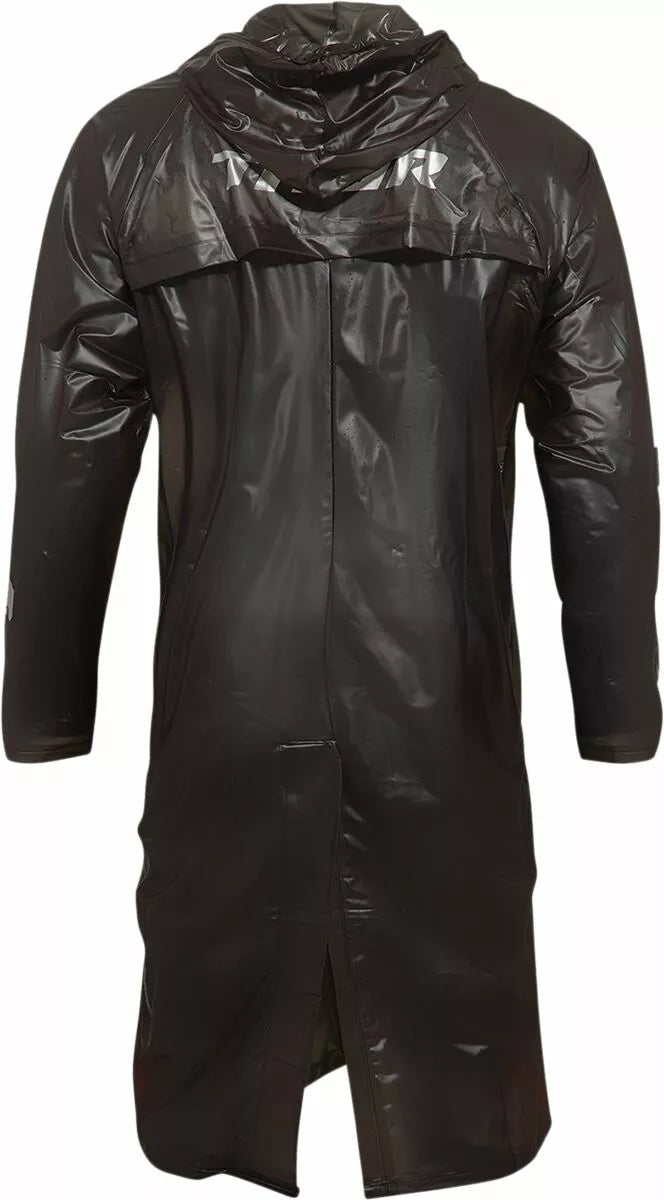 Costruzione in PVC 100%, maniche raglan con pannelli a rete dell'avambraccio per ventilazione, materiale semi-traslucente, tasche a lembo di carico anteriore, prese di scarico posteriore consentono all'aria calda di scappare, chiusure a scatto con cerniera e pulsante