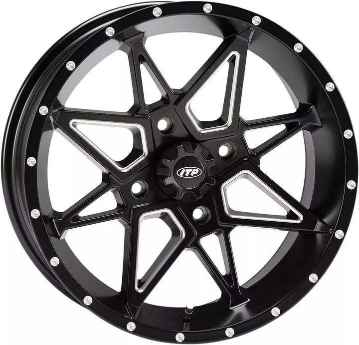 Caratteristica Configurazione del centro di Sloke Center con bordi smussati e integrità strutturale senza pari per terreno sfidante conquistante, il labbro per ruote interne dell'armatura rocciosa ITP fornisce struttura senza pari in lega di alluminio, include il cappuccio centrale e lo stelo della valvola, valutazione del carico dell'UE: 554,31 kg.