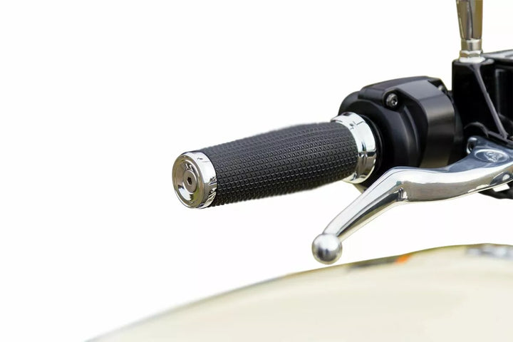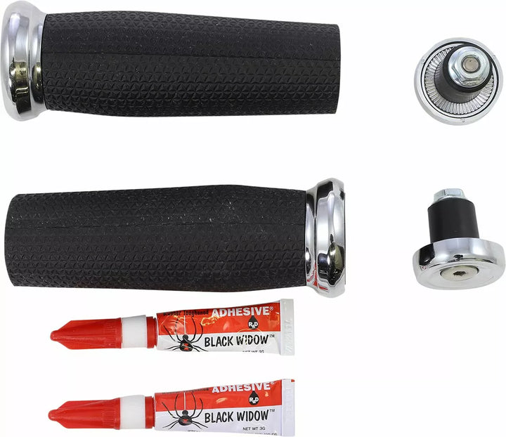 Le impugnature per trebbiate combinano una textura in gomma snurlata ispirata ai denti di squalo morbido con un profilo ergonomico che contorna a forma delle mani per un comfort e un controllo imbattibili, indossare un diametro più ampio per il pollice, l'indice e le dita medio e un profilo conico aderenti, con un profilo di vibrazione, aderente per il comodo di vibrazione, con una consa Tubo a farfalla e presenta una glice blust "senza sciocco", installazione unica o rimozione o rimozione per una presa fantastica a mano e uno stile distinto