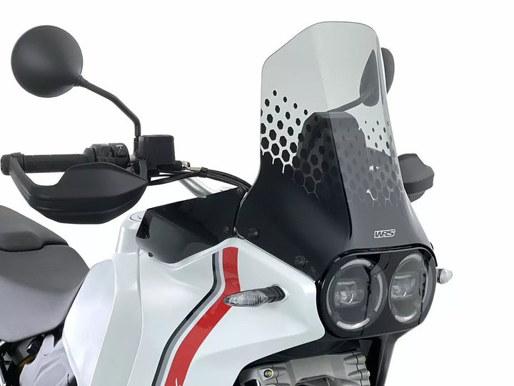 Il parabrezza realizzato utilizzando plexiglass PMMA di alta qualità., Verrà eliminata la fastidiosa turbolenza sulle spalle e il casco, la maggiore protezione offerta dallo schermo, si adatta perfettamente alla linea della bici, dandogli ancora più app per app