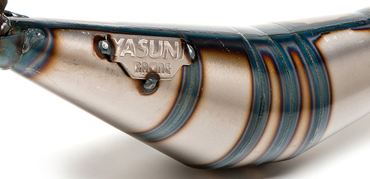 Questo sistema di scarico funziona con un cilindri da 50 cc, ma è costruito per fornire le massime prestazioni con altre personalizzazioni, comprese le modifiche apportate a cilindri da 70 cc. Diametro di uscita: 28 mm. Finitura del silenziatore di scarico: Finitura dei tubi di scarico del carbonio: omologia in acciaio inossidabile: non approvato in Svizzera