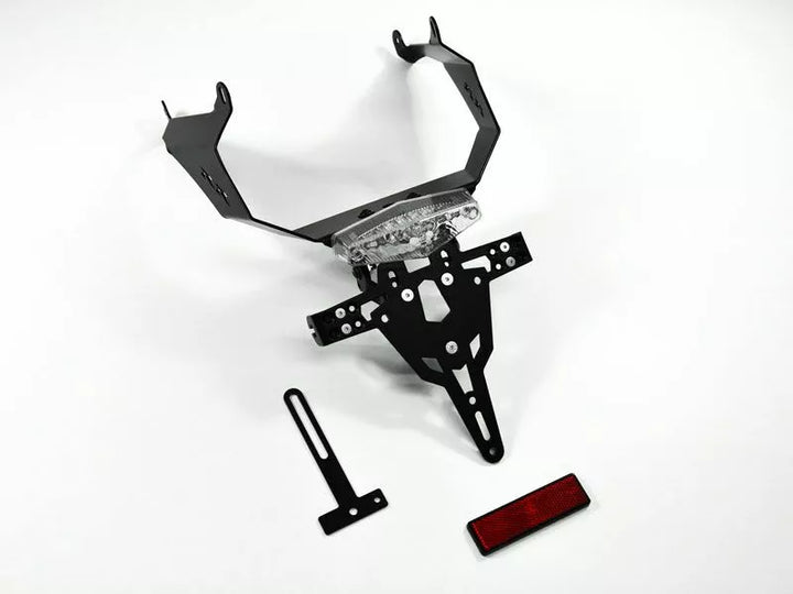 Il portafoglio di licenza è estremamente resistente e a prova di meteorologi., Polveri neri rivestiti. , Il supporto della targa può essere utilizzato per qualsiasi tipo di targa (larghezza di 175 mm)., Nessuna modifica della carenatura richiesta., Regolazione in coda dell'angolo di rastrello., Supporto indicatore regolabile in 3 posizioni. Piastra., I supporti per luce indicatore speciale (venduti separatamente) richiesti per le luci degli indicatori di stock., Kit include: 1 supporto per targhe incl. Kit di montaggio., Luce di licenza a LED "E Approsded" incl. Supporto., Back light con supporto. Di: Germania, Slovenia, Croazia e Regno Unito.