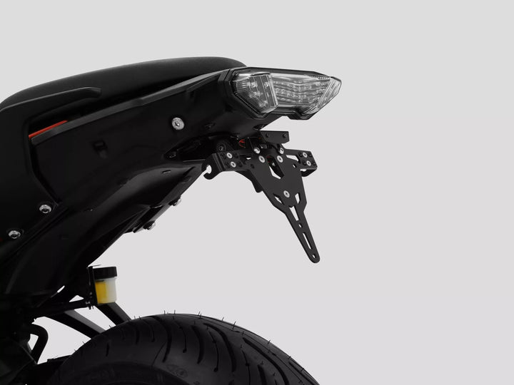Il portafoglio di licenza è estremamente resistente e a prova di meteorologi., Polveri neri rivestiti. , Il supporto della targa può essere utilizzato per qualsiasi tipo di targa (larghezza di 175 mm)., Nessuna modifica della carenatura richiesta., Regolazione in coda dell'angolo di rastrello., Supporto indicatore regolabile in 3 posizioni. Piastra., I supporti per luce indicatore speciale (venduti separatamente) richiesti per le luci degli indicatori di stock., Kit include: 1 supporto per targhe incl. Kit di montaggio., Luce di licenza a LED "E Approsded" incl. Supporto., Back light con supporto. Di: Germania, Slovenia, Croazia e Regno Unito.