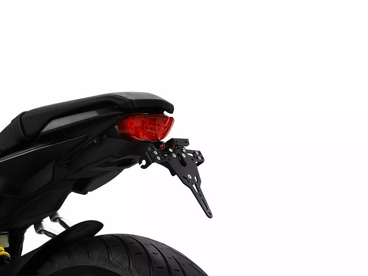 Il portafoglio di licenza è estremamente resistente e a prova di meteorologi., Polveri neri rivestiti. , Il supporto della targa può essere utilizzato per qualsiasi tipo di targa (larghezza di 175 mm)., Nessuna modifica della carenatura richiesta., Regolazione in coda dell'angolo di rastrello., Supporto indicatore regolabile in 3 posizioni. Piastra., I supporti per luce indicatore speciale (venduti separatamente) richiesti per le luci degli indicatori di stock., Kit include: 1 supporto per targhe incl. Kit di montaggio., Luce di licenza a LED "approvata" e approvata "incl. Supporto., Back light con supporto.