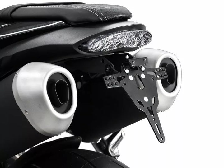 Il portafoglio di licenza è estremamente resistente e a prova di meteorologi., Polveri neri rivestiti. , Il supporto della targa può essere utilizzato per qualsiasi tipo di targa (larghezza di 175 mm)., Nessuna modifica della carenatura richiesta., Regolazione in coda dell'angolo di rastrello., Supporto indicatore regolabile in 3 posizioni. Piastra., I supporti per luce indicatore speciale (venduti separatamente) richiesti per le luci degli indicatori di stock., Kit include: 1 supporto per targhe incl. Kit di montaggio., Luce di licenza a LED "approvata" e approvata "incl. Supporto. Di: Svizzera, Polonia e Irlanda.