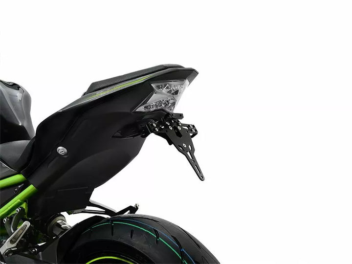 Il portafoglio di licenza è estremamente resistente e a prova di meteorologi., Polveri neri rivestiti. , Il supporto della targa può essere utilizzato per qualsiasi tipo di targa (larghezza di 175 mm)., Nessuna modifica della carenatura richiesta., Regolazione in coda dell'angolo di rastrello., Supporto indicatore regolabile in 3 posizioni. Piastra., I supporti per luce indicatore speciale (venduti separatamente) richiesti per le luci degli indicatori di stock., Kit include: 1 supporto per targhe incl. Kit di montaggio., Luce di licenza a LED "E Approsded" incl. Supporto., Back light con supporto. Di: Svizzera, Polonia e Irlanda.