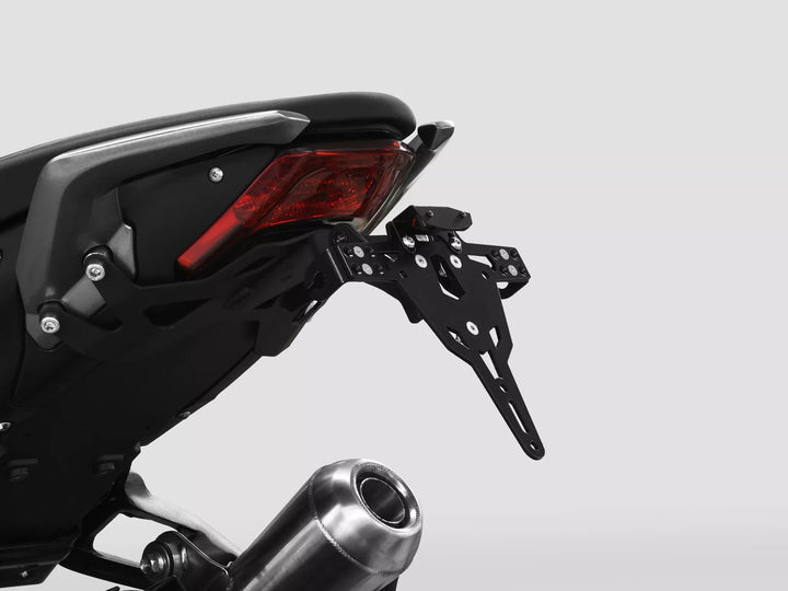 Il portafoglio di licenza è estremamente resistente e a prova di meteorologi., Polveri neri rivestiti. , Il supporto della targa può essere utilizzato per qualsiasi tipo di targa (larghezza di 175 mm)., Nessuna modifica della carenatura richiesta., Regolazione in coda dell'angolo di rastrello., Supporto indicatore regolabile in 3 posizioni. Piastra., I supporti per luce indicatore speciale (venduti separatamente) richiesti per le luci degli indicatori di stock., Kit include: 1 supporto per targhe incl. Kit di montaggio., Luce di licenza a LED "approvata" e approvata "incl. Supporto., Back light con supporto.