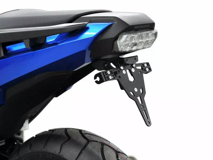 Il portafoglio di licenza è estremamente resistente e a prova di meteorologi., Polveri neri rivestiti. , Il supporto della targa può essere utilizzato per qualsiasi tipo di targa (larghezza di 175 mm)., Nessuna modifica della carenatura richiesta., Regolazione in coda dell'angolo di rastrello., Supporto indicatore regolabile in 3 posizioni. Piastra., I supporti per luce indicatore speciale (venduti separatamente) richiesti per le luci degli indicatori di stock., Kit include: 1 supporto per targhe incl. Kit di montaggio., Luce di licenza a LED "approvata" e approvata "incl. Supporto., Back light con supporto.