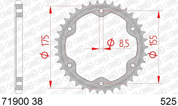 Afam Steel Rear Pro's are Machined From C45 Steel, and are then Treated to Higher Hardness and Even Resistance. The High-Quality Manufacturing Process and the Cutting Precision Made AFAM A World Leader for Motorcycle Transmission Parts. Steel rear Sprockettop of Range Manufacturing and QualityContributes to Transmission Kit Durability Chain_pitch: 525.0 Material: Steel rear_prolet_teeth_count: 38.0 REAR_PROET_TEPE: