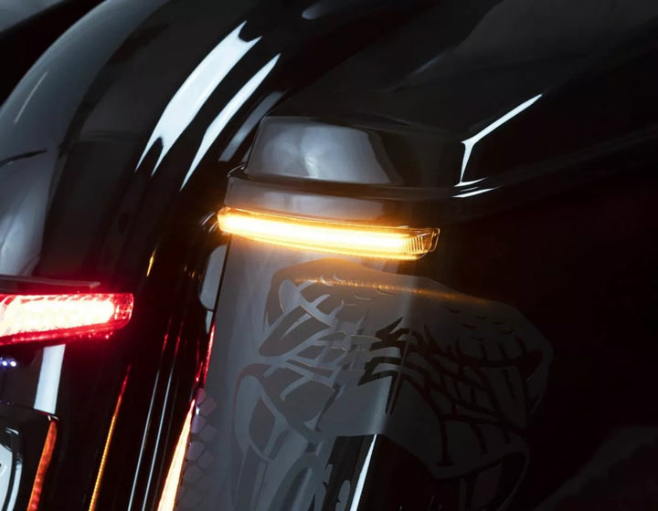 Original, low-profile Saddlebag Lights that fit Perfectly, one of the cleanest way to add light to the back of your bike, low-profile light housing seats right belly to blend seamlesly into the back of the bike, plug-spirit install