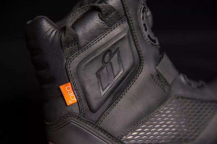 Premium Leather Upper Feature A Water-Resistant Finish, Breathable Event Waterproof Liners Help Keet Dry, Highly Lugged Oil/ Slip-Resistant Rubber Outsoles Provide Peak Motorcycle Performance, Open-Cell Polyurethane Insoles Feet, Ba. Comfortable Fit, Dual D3O® Inserts Provide Ankle Coverage, Reinforced Rubber Toe Caps, Reflective Heel Accents and Shifter Interface NUBS