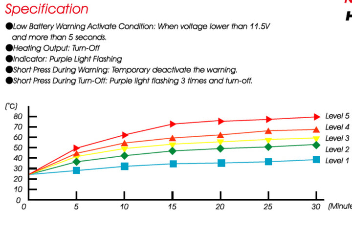 With his Integrated thumb control and 5-step heat adjustment can you easily change the temperature without taking hands from the board, which gives one safer and more comfortable driving. A 5-color LED display quickly shows which heating mode you use, and that Automatic low voltage protection Make sure your motorcycle always has enough power to start.