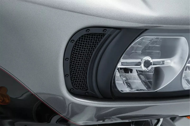 Easy installation that does not require fairsing removal, and does not impede fairy removal once installed, styled to coordinate with the entire mesh collection, available in chrome or satin black finish