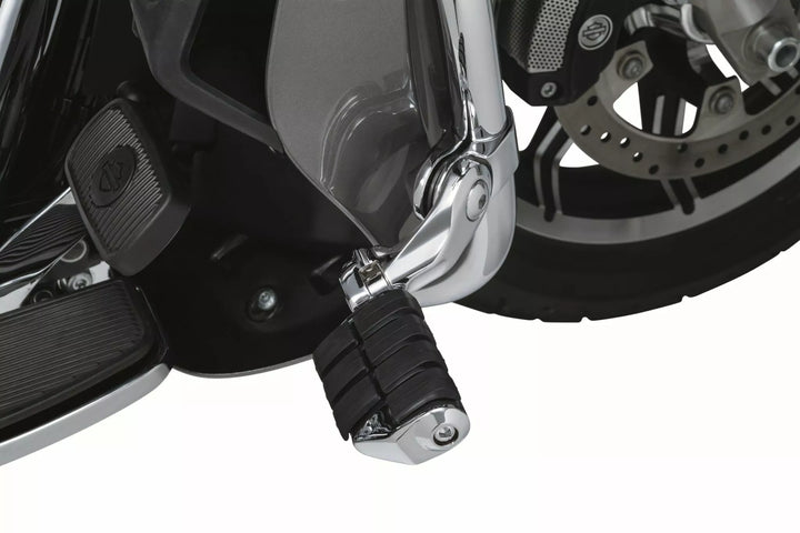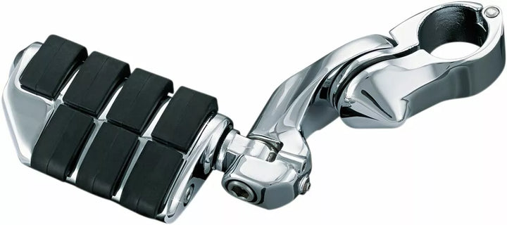 Now You Can Easily Mount Cruise Pegs On Dresser/Touring Models With Highway Bars and Fairing Lowers, Special Clamp Interfaces With An Offset Arm To Reach Around The Bike's Lowers, Entire Assembly Can Be Moved Up Or Down On The Engine Guard or Adjusted Along A Vertical or Horizontal Arc, Unique Clevis Permits Angle Adjustment of the Foot Peg, Mount Fits 1-1/4 "Diameter Engine Guards or Frame Tubing