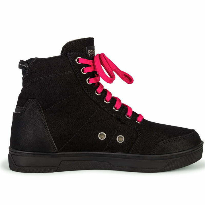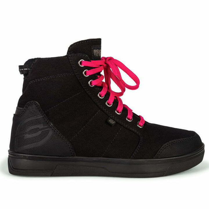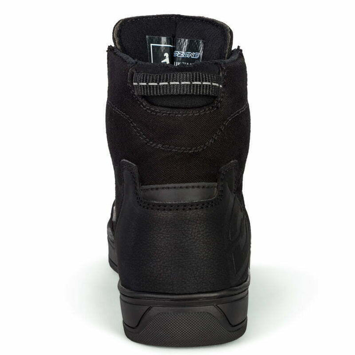 Comfortable motorcycle shoes made of microfiber cloth cotton fabric with a breathing feed in polyester network. They have valves on the inside, ankle and heel reinforcements, double seams, a stiff toe hat and a slip sole. Antibacterial insole gives a sense of freshness.
