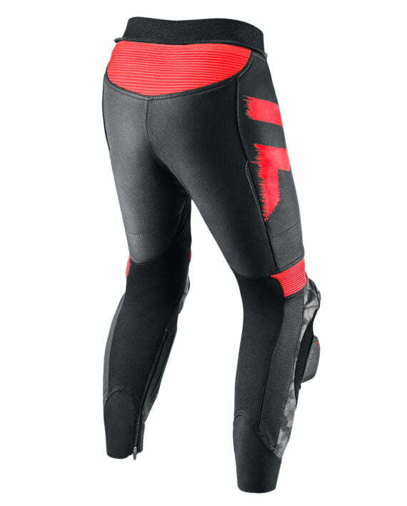 Rebel MC-pants in leather are equipped with CE approved protection, kevlar reinforcement and external pockets for additional protection. Perfoings and very elastic details make sure you get a comfortable ride. Together with Rebel MC jacket, your pants give you a safe and stylish outfit that is suitable for adrenaline gains driving experiences.