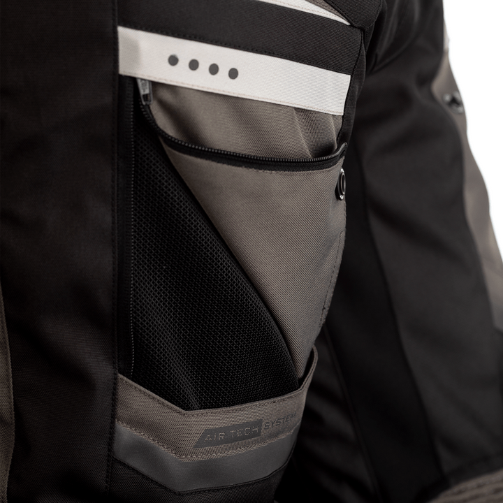 Ventilationsöppning med dragkedja på ärmen av RST Textil Mc-Jacka Maverick Svart/Grå för förbättrad luftcirkulation och komfort under varma dagar.