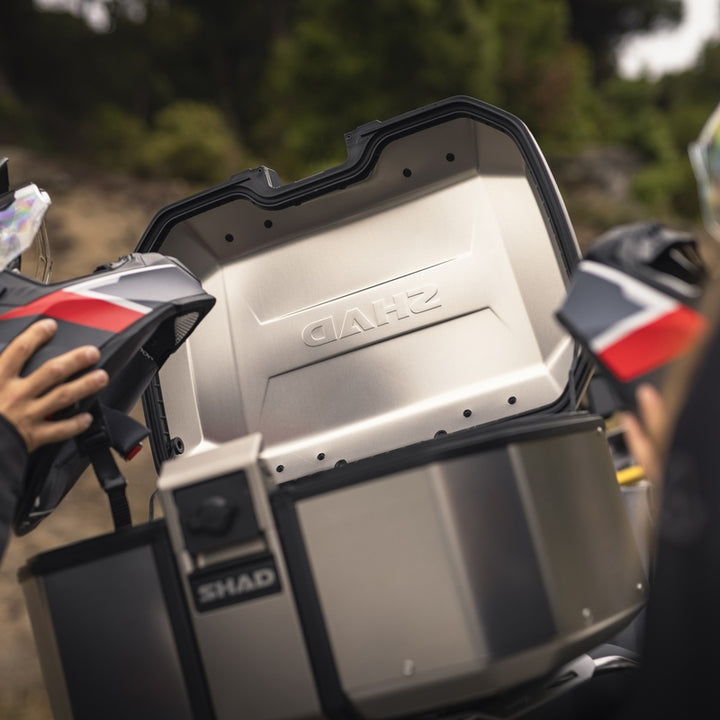 Shad TR55 is The market's lightest aluminum-topcase with a weight of only 5.4 kg - and yet it holds Two folding helmets. It is designed to withstand tough grips, whether you drive to work or cross continents on dirt road.