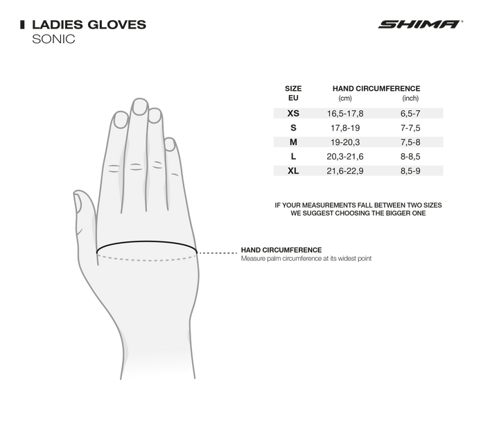 The SHIMA SONIC LADY gloves are designed specifically for women and combine protection, comfort, and exceptional fit. Made from natural goatskin, they offer high elasticity and a perfect fit for the female hand, providing comfort in all situations. Reinforcements such as the hard GFLEXX protection for the knuckles and GFLEXX foam in strategic places effectively provide protection while riding. Extra foam reinforcements on the fingers offer additional safety without compromising comfort. The Sonic Lady gloves ensure excellent ventilation thanks to ventilated materials and perforations on the fingers and inside of the hand, making them the perfect choice for warm days. The accordion on the fingers increases flexibility, and the neoprene cuff with adjustable Velcro ensures a perfect fit.