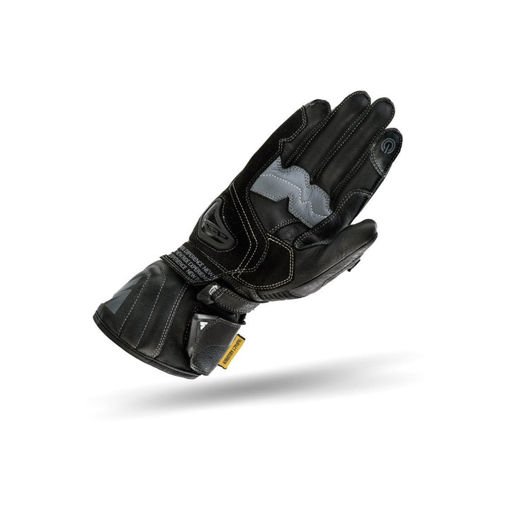SHIMA STR-2 has perforated leather on the fingers for optimal ventilation during hot days. The seams used in this model are external to eliminate pressure on the fingers, and they are designed with a pre-curved structure, making it easier to operate the controls on longer rides. Many folds and inserts of flexible material make the glove easy to adapt to the hand's changing position. Additionally, the accumulation of material not only increases mobility in areas most exposed to tension but also has a protective function. A non-slip patch mounted on the inside of the hand prevents grips from slipping and helps stabilize it.