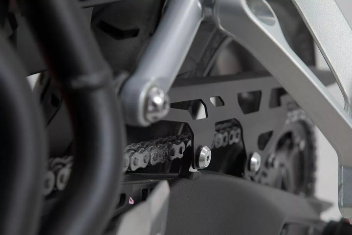 The SW-Motech Chain Guard is a high-quality alternative to the original Plastic Chain Guard, The Rubber-Mounted Attachment Is Easy to Install, Solid Aluminum Construction as an Alternative to Plastic Chain Guard, Perfect Fit That Hugs The Bike's Curves Attachment Dampens Driving Vibrations, Included in Delivery, 1 x Chain Guard, Mounting Instructions, Mounting Material